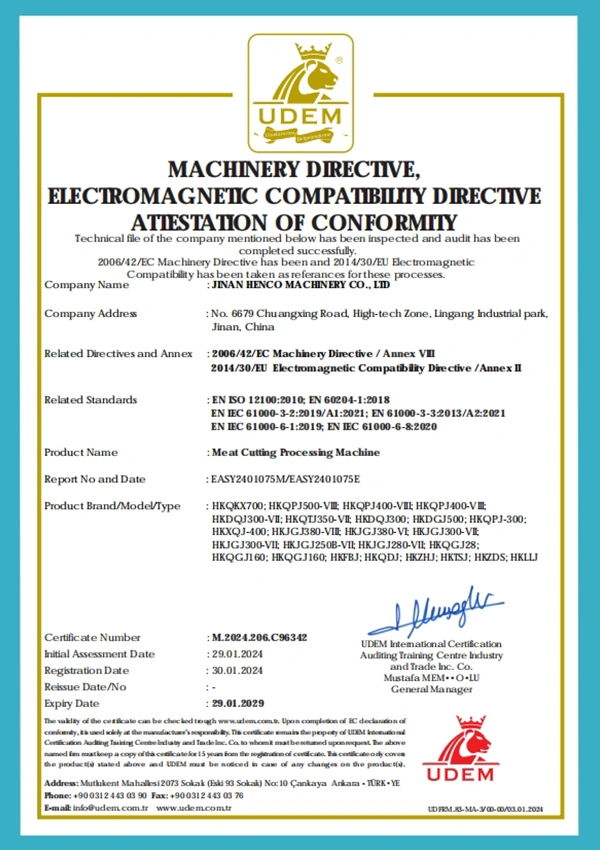 Henco se estableció en noviembre de 2015 y se encuentra ubicada en la Zona de Alta Tecnología de Jinan, en la provincia de Shandong. Es una empresa moderna dedicada a la fabricación inteligente de maquinaria para la industria alimentaria, que integra investigación, desarrollo, producción y ventas. Especializada en equipos de gama media y alta, proporciona soluciones completas y profesionales para el procesamiento de carne.